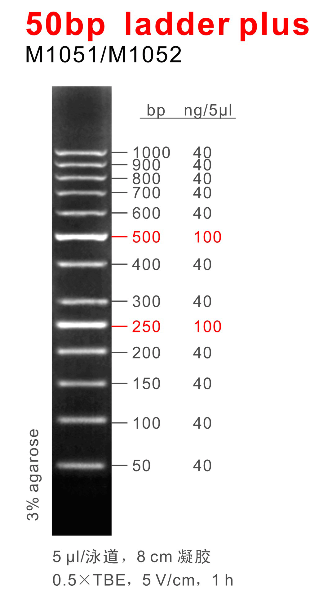 50bp ladder plus已预混上样缓冲液,可直接进行电泳分析。